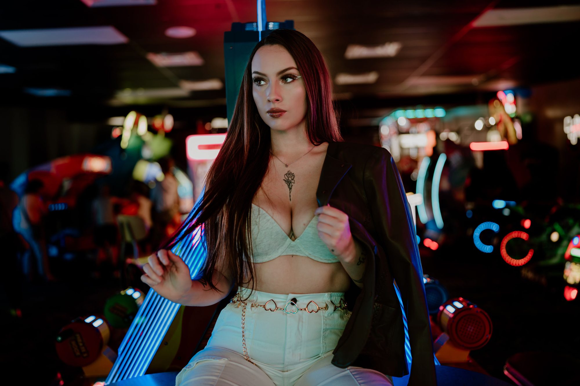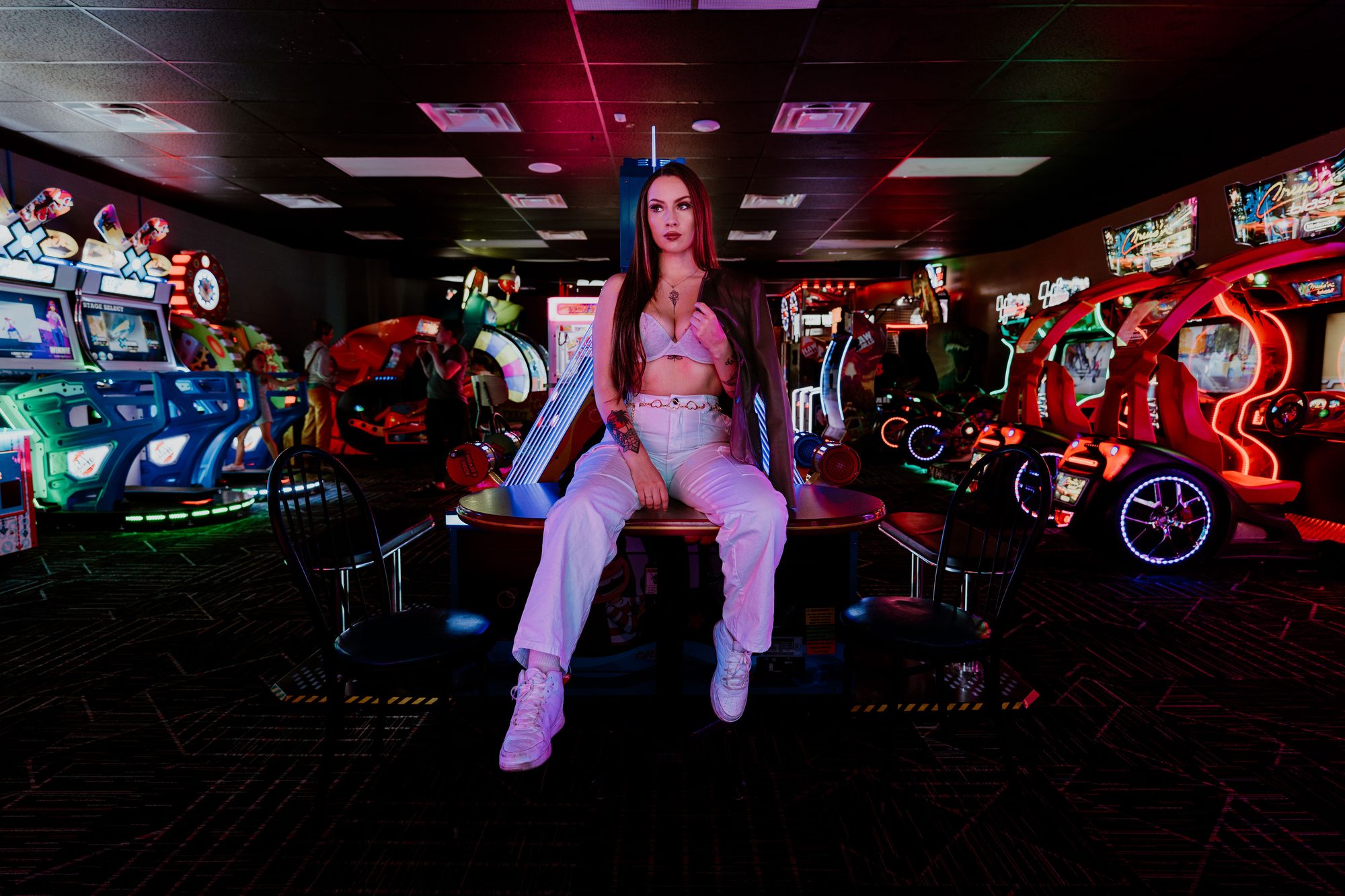 Bold, editorial-style sessions in unique locations — neon-lit arcades, urban backdrops, and anywhere your vibe takes us.